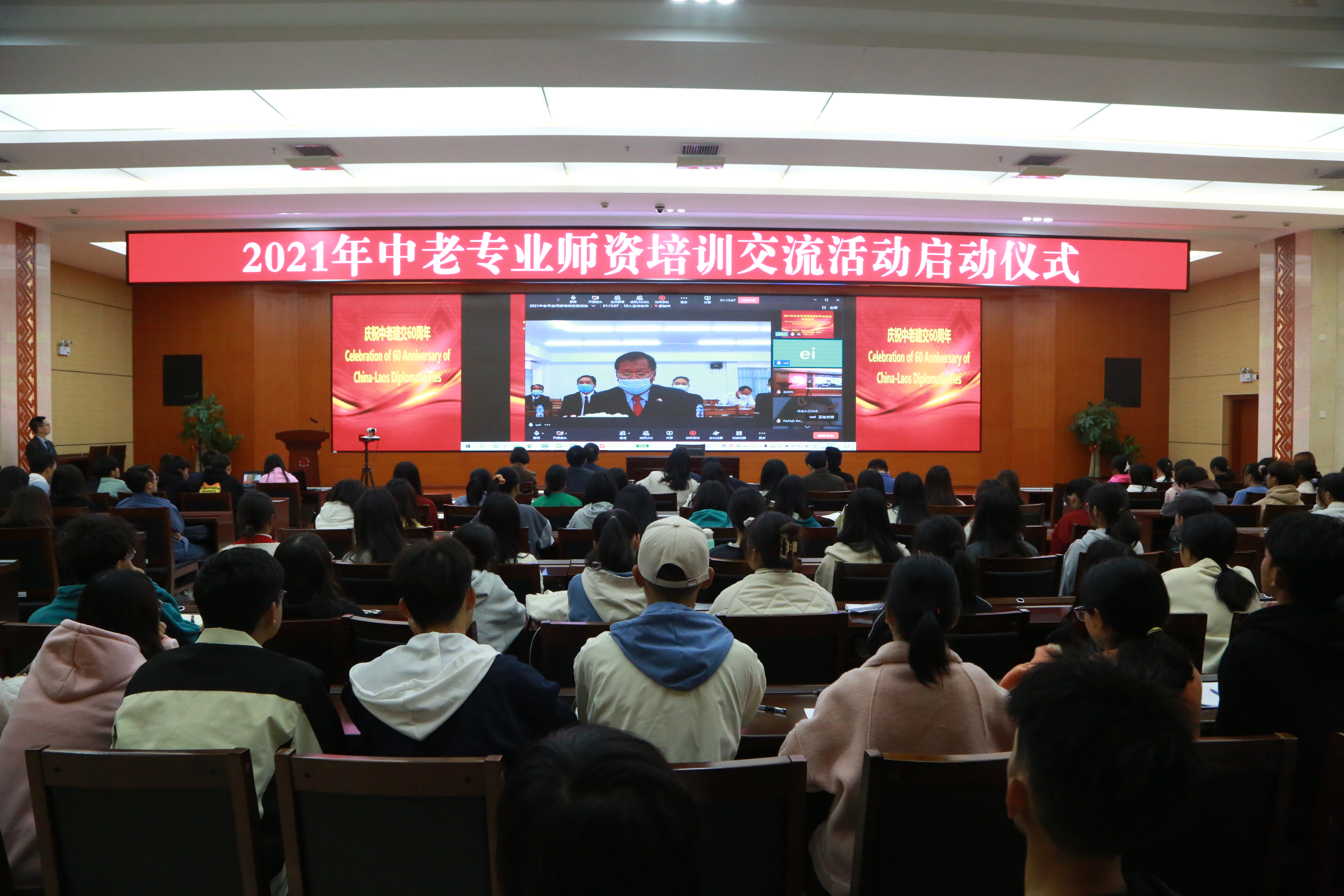12月6日,由金年会与老挝巴巴萨技术学院联合主办的2021年中老专业师资培训交流活动正式启动,启动仪式会场分别设在学校会议中心2号厅和巴巴萨技术学院。学校校长周旺、副校长胡卫东,老挝巴巴萨技术学院校长邦彭·索姆辰翁(Mr. Bounpheng SOMCHANMAVONG)、副校长段迪·司利邦(Mr. Duangdee SILIBANG)、副校长科拉可·福米弥斯(Mr. Kalakhone PHOUMIMITH)出席会议。两校的国际交流中心负责人、相关院系负责人、师生以及来自老挝74名参培专业老师共200多人在南宁和万象两地参加了启动仪式。仪式由我校国际交流中心主任甘善泽主持。