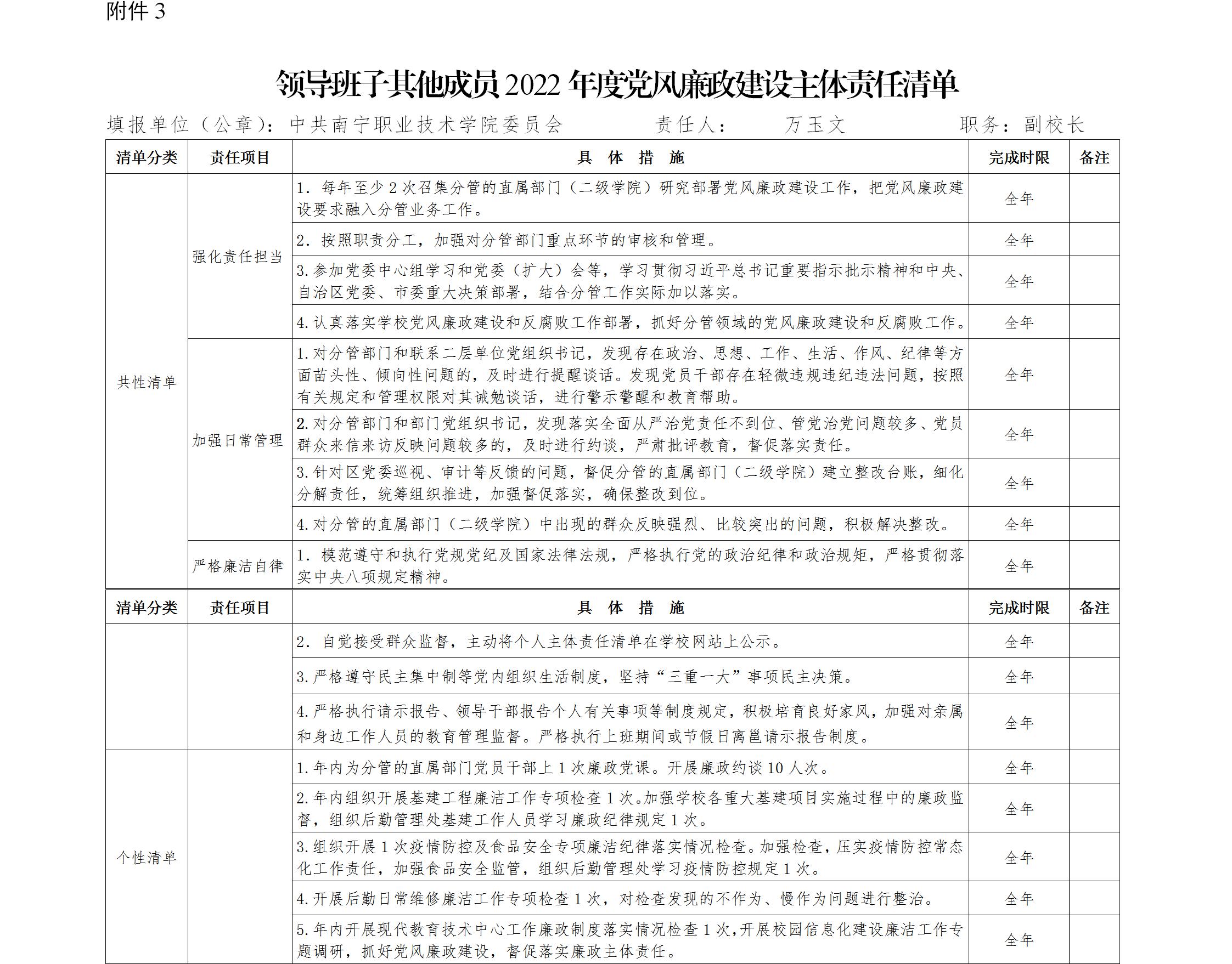 领导班子其他成员2022年度党风廉政建设主体责任清单